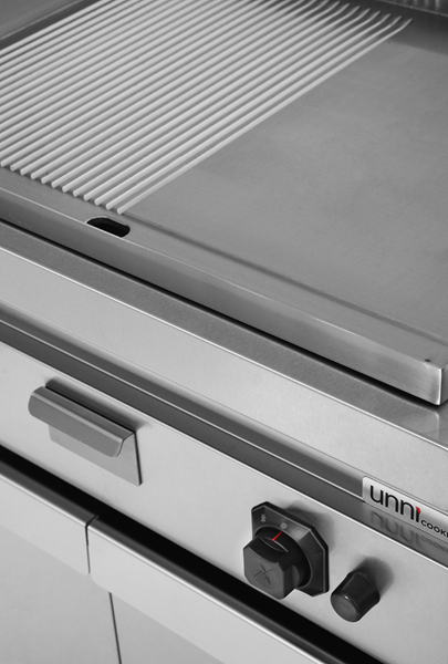 This professional gas griddle features a half grooved and half smooth cooking surface, offering excellent versatility for preparing fish, meat, and vegetables. The grooved section allows excess fats to drain away for healthier cooking, while the smooth surface ensures even heat distribution and odourless operation. Equipped with piezo ignition for quick and reliable start-up, this griddle is ideal for intensive professional use. Delivered fully assembled and ready for immediate installation.