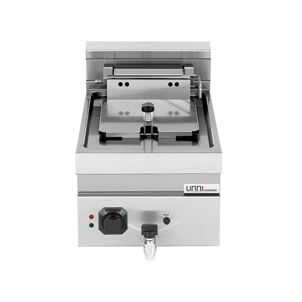 Discover our high-efficiency electric fryer with 50 mm double-skin insulation β engineered for top performance, energy savings, and ease of use. β¨ Available in 2 versions: β’ 1 Γ 12 liters β’ 2 Γ 12 liters β‘ Power & Performance: Each tank delivers 9 kW of power, equipped with high-quality thermostats and contactors. Enjoy up to β¬76 in electricity savings per month thanks to its superior energy efficiency! πΌ Smart Design & Usability: β’ Stainless steel handle with lift-up element function β’ Easy-to-use tilt and click system for effortless cleaning β’ Optional base unit with folding doors or drawers β’ Cold zone for longer oil life π‘οΈ 2-year warranty π Dimensions: 400 Γ 700 Γ H370 mm π Power cable: 5Γ6 mmΒ² β 1.5 m length