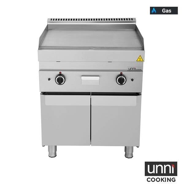 The 650 SERIES griddle by UNNI-COOKING delivers top performance in any professional kitchen. Its durable stainless steel design ensures longevity and easy cleaning, while the smooth cooking surface is perfect for everything from chicken skewers to vegetable platters. A high-quality tubular burner provides even heat distribution, eliminating cold spots for consistent results. The integrated drip tray and drain outlet allow for quick, hygienic grease removal. Plus, the built-in thermocouple safety device ensures secure operation. Choose the 650 SERIES for reliability, durability, and exceptional cooking results—every time!