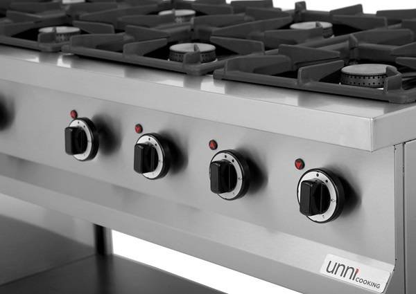 The UnniCooking commercial gas stove now features upgraded Italian burners for maximum efficiency and power. With 6.5 kW dual overlapping flames, each burner delivers intense, concentrated heat, perfect for grilling, simmering, and sautéing. 🔥 New vertical burners – High power with reduced gas consumption 🔥 Integrated pilot flame – Reliable and efficient operation 🔥 Easy-to-clean enameled drip trays The upgraded burners ensure faster, more precise cooking, while creating an elegant visual effect. See the image for burner details. UnniCooking: power, speed, and precision in your kitchen!