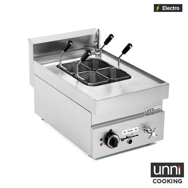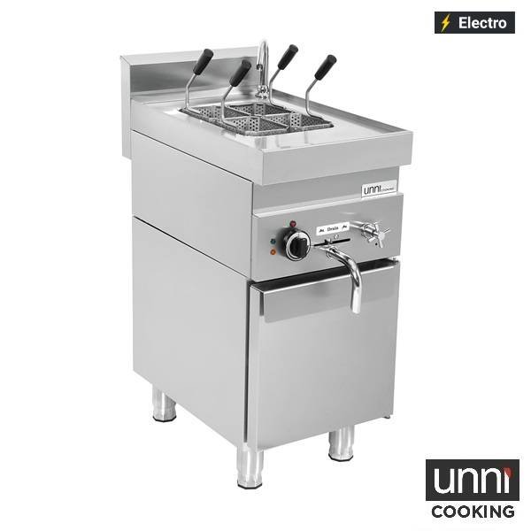 The pasta cooker is versatile and can be used for cooking pasta, vegetables, rice, and potatoes. Its design resembles that of a fryer and it is just as easy to use. The cooker’s heating element quickly brings the water in the container to a boil. Pasta and vegetables have never been cooked faster. With the pasta cooker, you can prepare large quantities of food in no time. Once the cooker is filled with water, you won’t have any further concerns. Cookers are available in various capacities and models; we offer table-top models as well as free-standing cookers. No matter which pasta cooker you choose, it is of high quality, easy to use, and easy to clean.