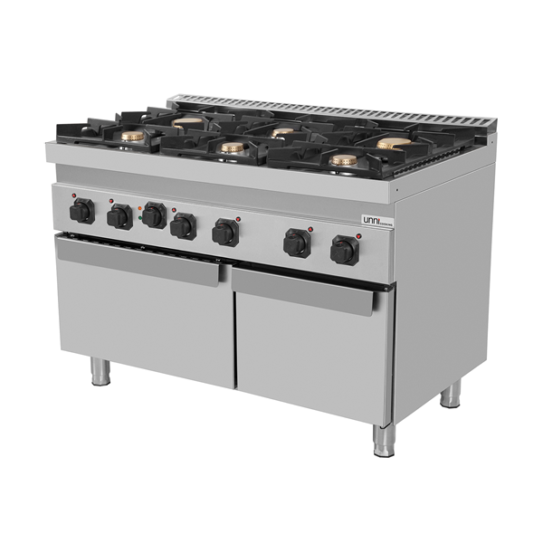 Burner type: Gas Number of burners: 6 Burner output: 4 × 6.5 kW and 2 × 9 kW Cast iron grate dimensions: 600 × 360 mm Design: Upright (freestanding) unit Operating mode: Gas