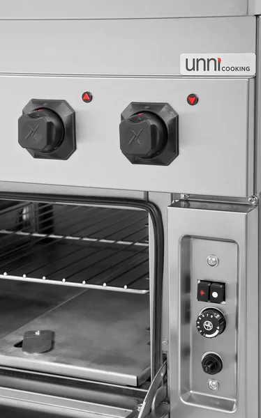 Gas oven with 4 burnersTotal output: 35 kWOven capacity: 93 litres (GN 2/1)Temperature range: 140–300 °CBurner power: 3 × 6.5 kW + 1 × 9 kWManual ignition with pilot flameHeight adjustable: 850–900 mmCast iron gratesRemovable drip traySuitable for Natural Gas (H)LPG nozzles included