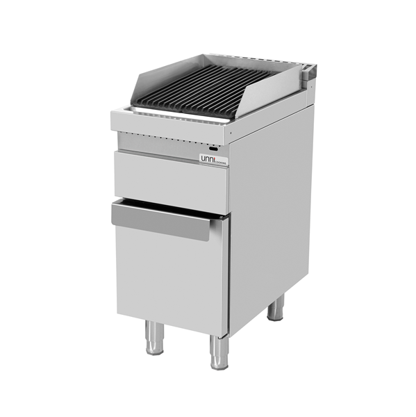 Professional gas water grill (UNNI 700), freestanding model with stand and extra-large grilling surface.,