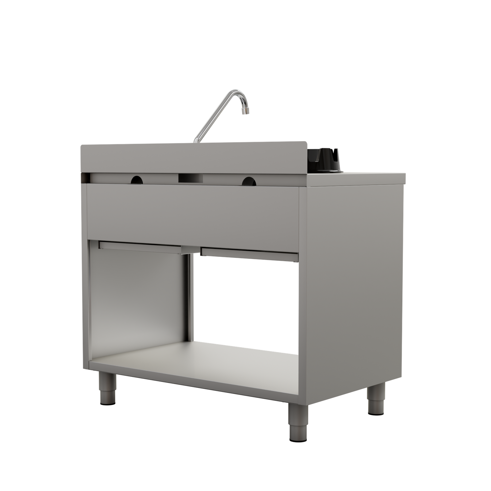 Suitable for natural gas and propane Supplied for natural gas by default – easily convertible to propane (jets included) 1/2″ gas connection Fixed mini faucet and mini relief valve Removable grease drip tray Integrated splash guard Manually adjustable flame (low to high) Manual temperature control Open substructure for additional working space Height-adjustable feet for optimal leveling Wastewater strainer Easy to operate and maintain 🔧 Specifications: Power Output: 15 kW External Dimensions (W x D x H): 500 × 700 × 1040 mm Fuel Type: Natural gas (default), convertible to propane Cooking Zone: 1 wok ring Body Material: High-quality Stainless Steel (AISI 304) – corrosion-resistant and hygienic What’s Included: 2 x Gas Wok Burner Unit 1 x Fixed Mini Faucet 1 x Mini Relief Valve 2 x Grease Drip Tray 2 x Set of jets for natural gas and propane Open stainless steel substructure Why Choose This Wok Burner? This gas wok combines power, precision, and professional-grade quality — ideal for chefs who demand high heat, fast recovery, and reliable performance. Perfect for: Asian cuisineFood trucks and mobile kitchensHigh-capacity commercial kitchens